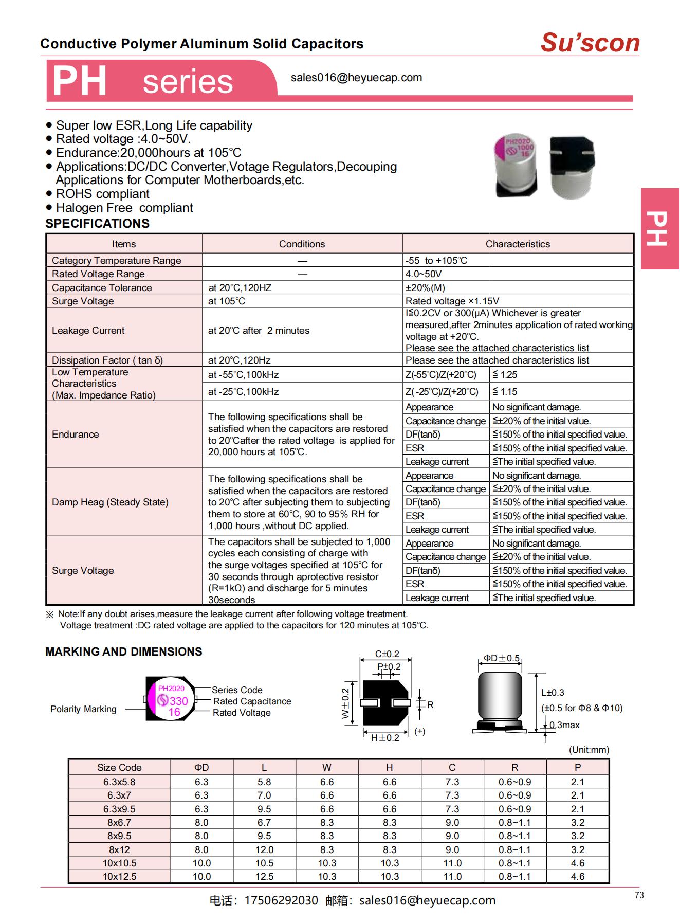 ● Super low ESR,Long Life capability● Rated voltage :4.0~50V.● Endurance:20,000hours at 105℃● Applications:DC/DC Converter,Votage Regulators,Decouping Applications for Computer Motherboards,etc.● ROHS compliant● Halogen Free compliant