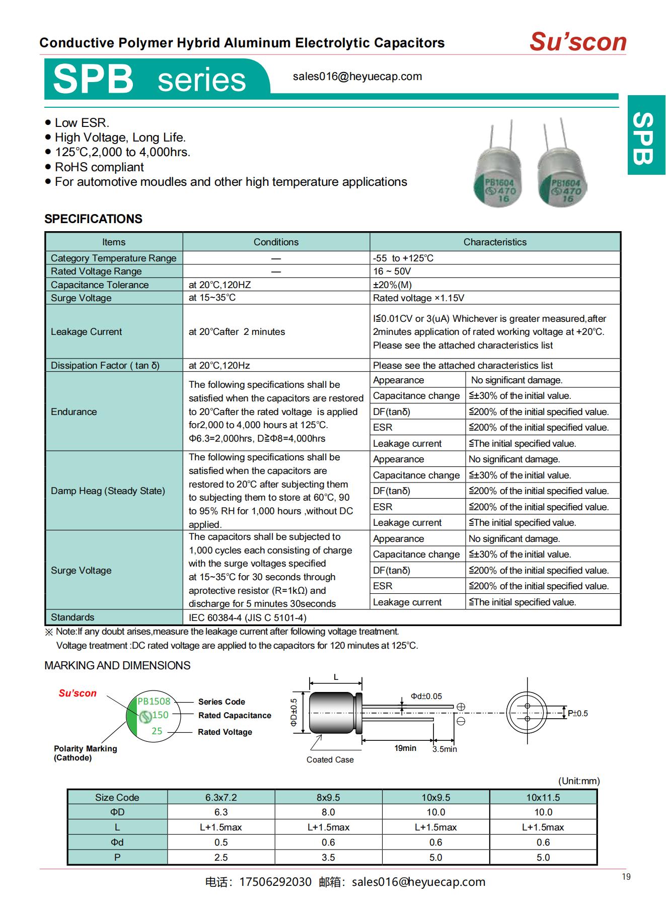 ● Low ESR.● High Voltage, Long Life.● 125℃,2,000 to 4,000hrs.● RoHS compliant● For automotive moudles and other high temperature applications