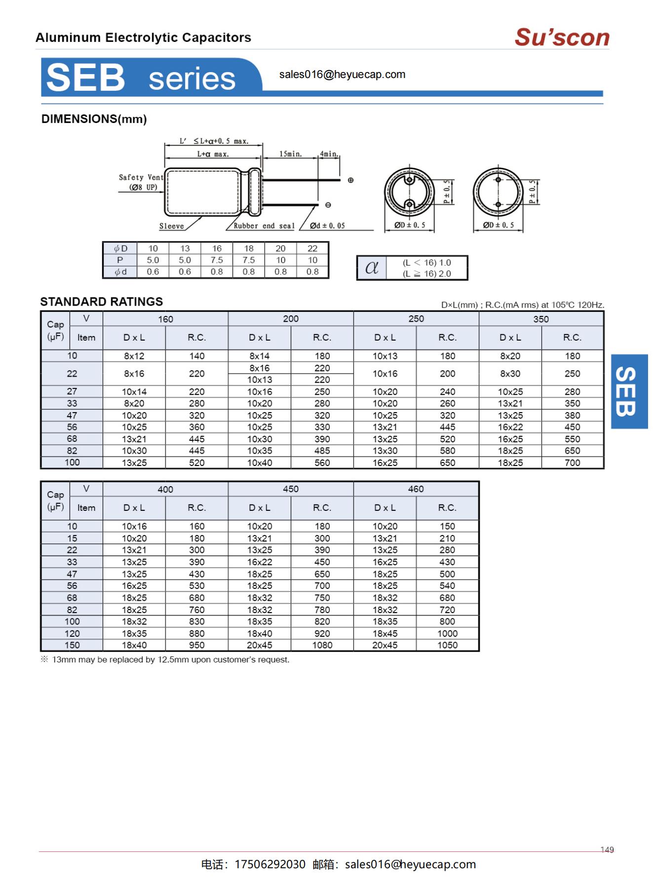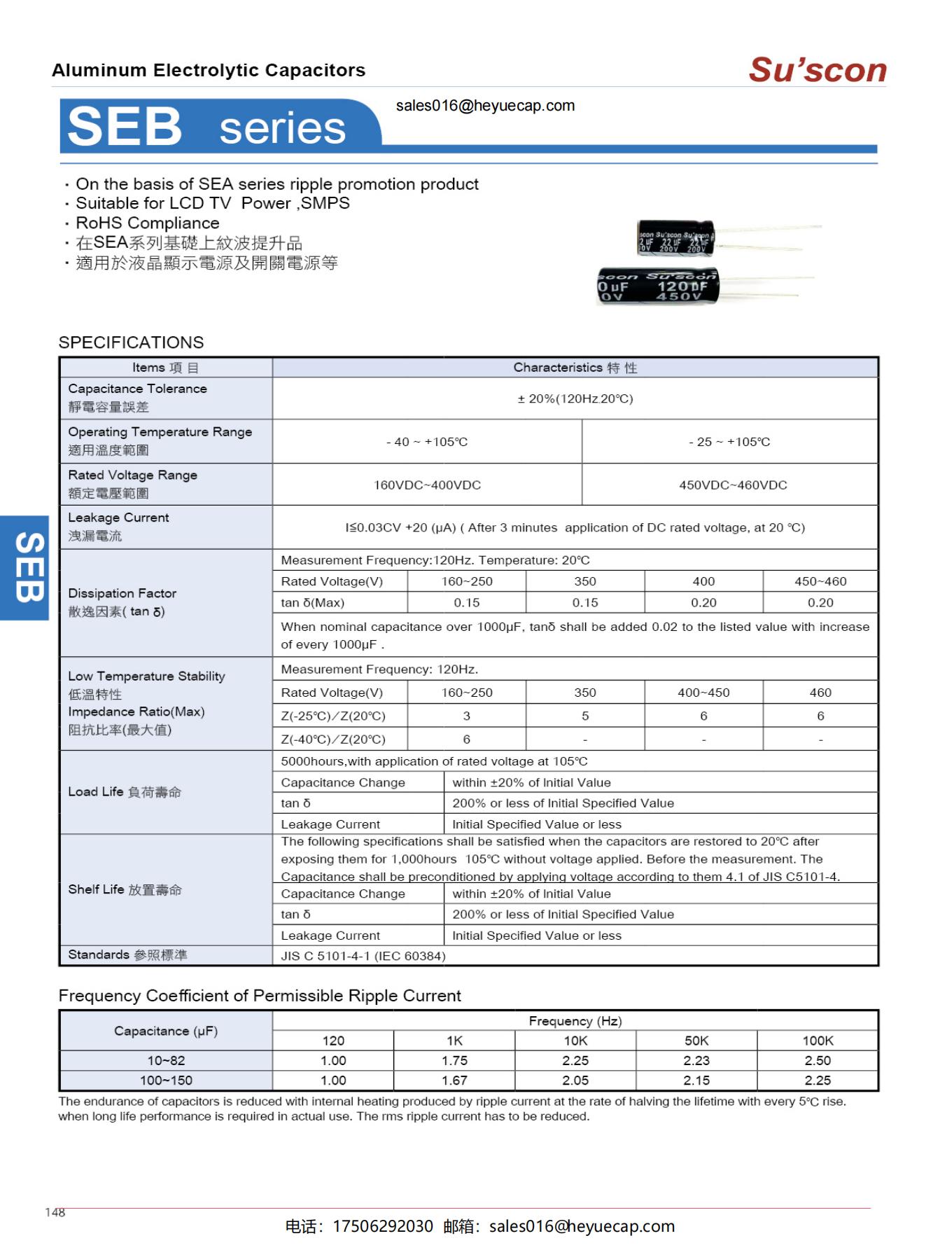 .On the basis of SEA series ripple promotion productSuitable for LCD TV Power,SMPS.RoHS Compliance·在SEA系列基礎上紋波提升品·適用於液晶顯示電源及開關電源等