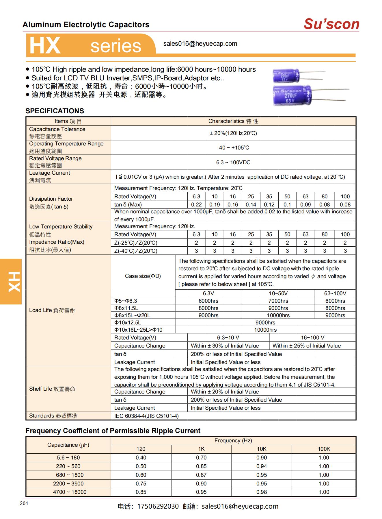 ● 105℃ High ripple and low impedance,long life:6000 hours~10000 hours● Suited for LCD TV BLU Inverter,SMPS,IP-Board,Adaptor etc.. ● 105℃耐高纹波,低阻抗,寿命:6000小時~10000小时。● 適用背光模组转换器 开关电源,适配器等。