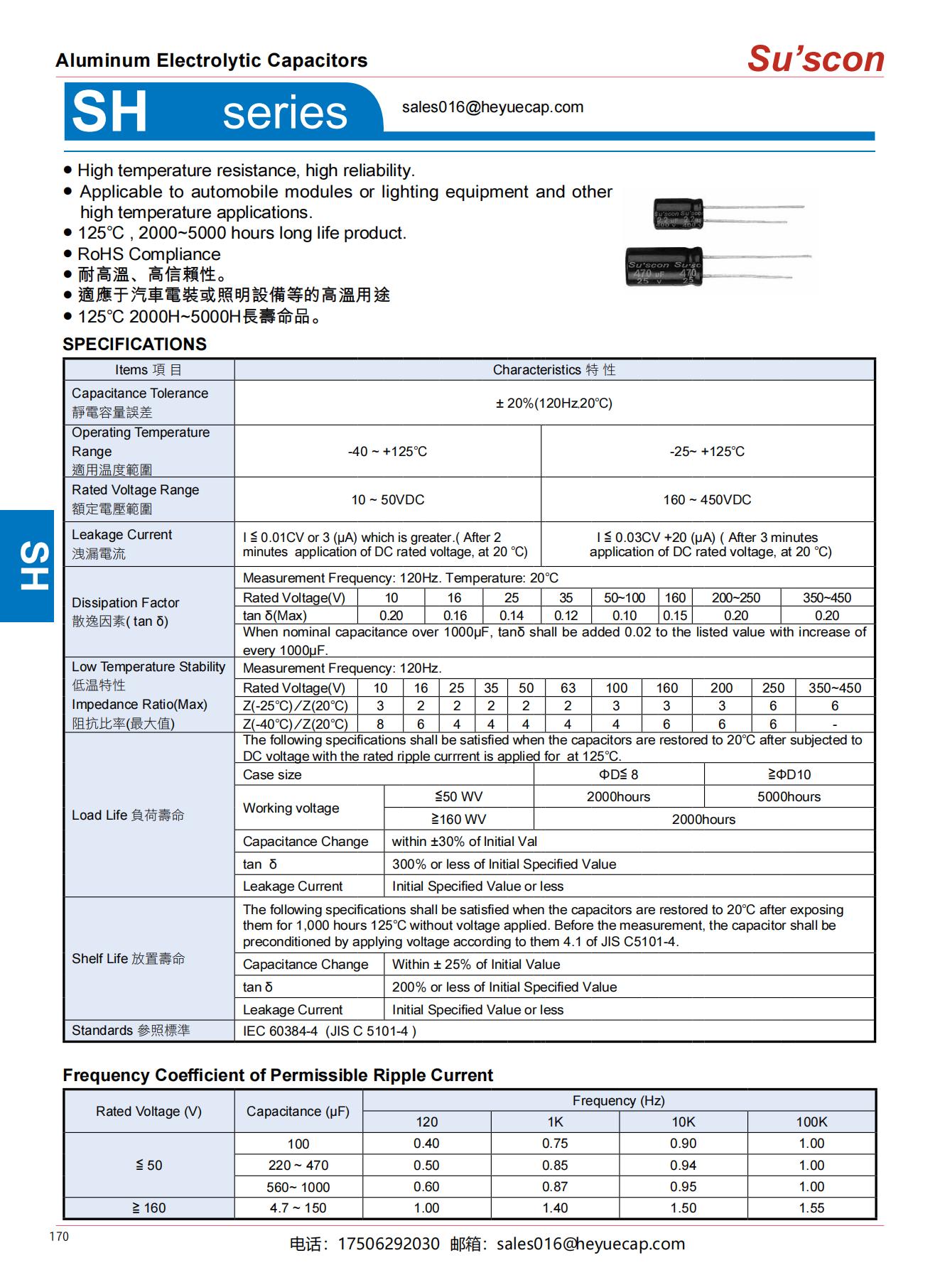 ● 125℃ , 2000~5000 hours long life product.