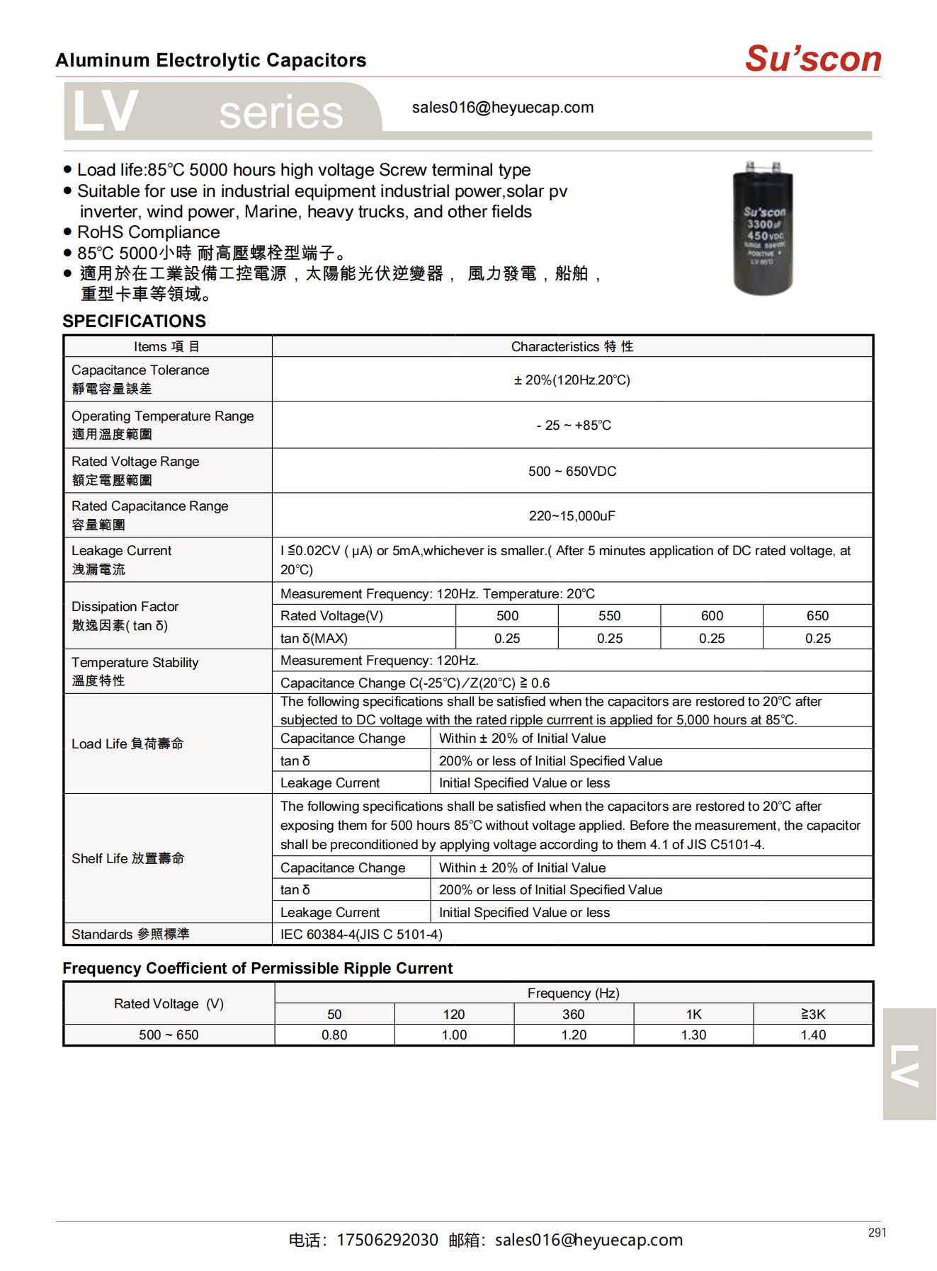 ● Load life:85℃ 5000 hours high voltage Screw terminal type
